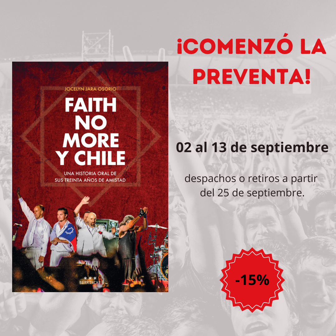 Esta publicación, bajo el sello de Berrinche Ediciones, que a su vez forma parte de la editorial independiente Libros del Amanecer, viene a saldar una deuda pendiente con los fans de Faith No More, pues aquí se materializa por fin en formato libro el relato de cómo el destino se confabuló para que entre estos músicos y los chilenos, se creara un vínculo tan particular que difícilmente se repite en otras partes del mundo. De esta manera, la autora le da voz no solo a periodistas especializados en música y espectáculos, sino que también a aquellos músicos que se influenciaron de sus canciones y fans que han asistido a sus conciertos, entre muchos otros.