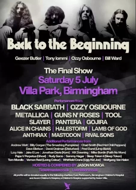 Según Blabbermouth, el show, titulado «Back To The Beginning», reunirá a los miembros originales de Black Sabbath por primera vez en 20 años. La banda tocará en Villa Park, Birmingham, el 5 de julio.