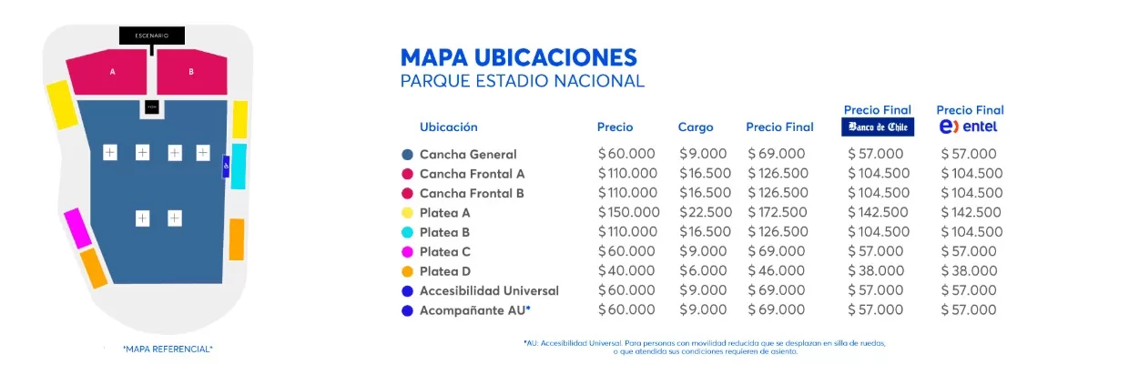 ¡Hace instantes! La ticketera encargada de las entradas para Green Day en Chile reveló los precios en las ubicaciones para el show de la banda de punk rock en el Parque Estadio Nacional del próximo 30 de agosto del 2025.