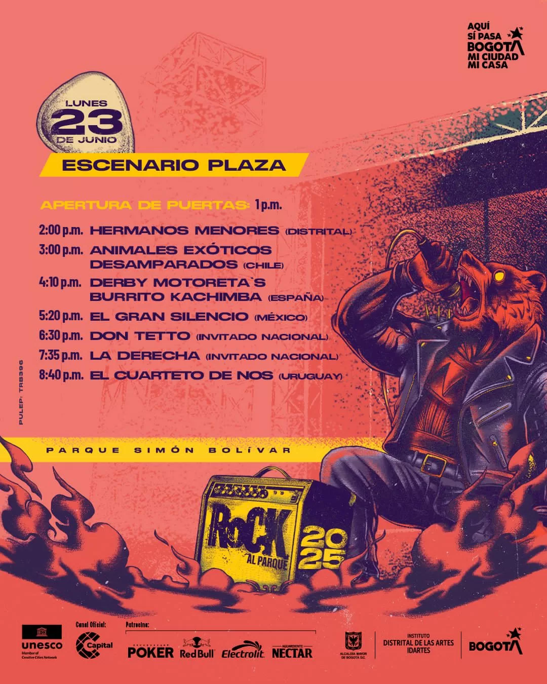 La presentación de Animales Exóticos Desamparados está programada para el lunes 23 de junio en el Escenario Plaza del Parque Simón Bolívar. Su repertorio incluirá composiciones clave de su carrera, marcadas por una intensidad escénica que ha conquistado públicos desde Sudamérica.