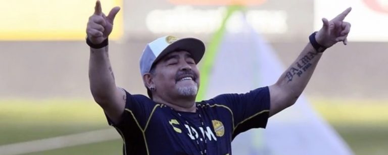 Diego Maradona y su baile viral tras la victoria de su equipo de fútbol conquista la Web El triunfo por 2 a 0 del Dorados de Sinaloa ante los Leones Negros, este lunes, hizo muy feliz al ex jugador.