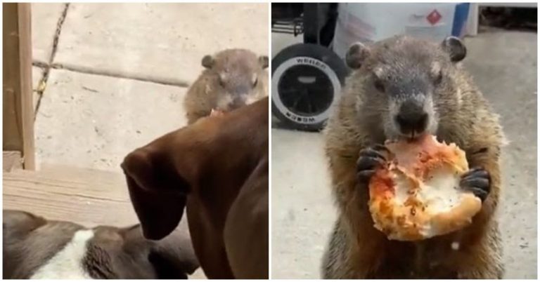 Marmota intrusa saboreó un trozo de pizza y se burló de dos perros en su propia casa En un video que grabó la dueña de casa se puede ver al roedor comiendo muy a gusto el alimento frente a los canes.