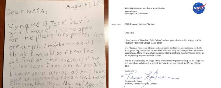07 Ago, 2017 —La NASA le responde a un niño de 9 años que postula a ser Director de Protección Planetaria