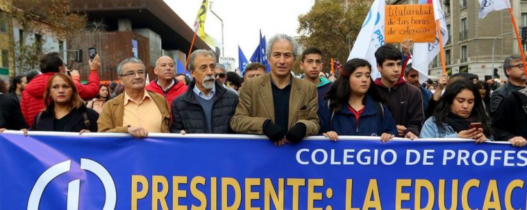12 Jun, 2019 —Profesores se manifestaron en las afueras del Mineduc en plena reunión con subsecretario