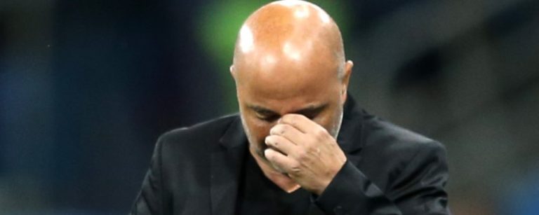 21 Jun, 2018 —Jorge Sampaoli reacciona impactado tras grosero error de Willy Caballero en el partido entre Argentina y Croacia