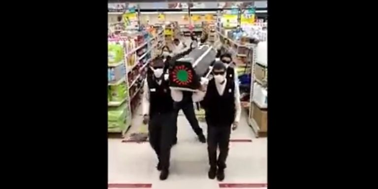 25 Abr, 2020 —Trabajadores de supermercado en Osorno recrean meme del ataúd para combatir el coronavirus